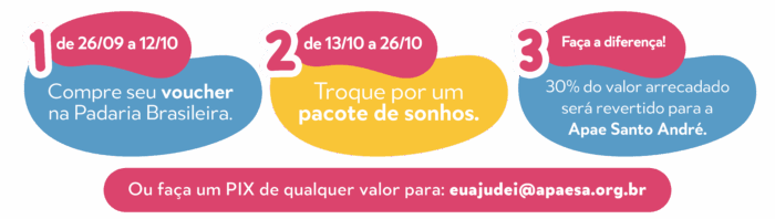 🍩 Compre um voucher (R$ 24,00) em qualquer unidade da Padaria Brasileira e troque por um pacote de sonhos nos sabores: Creme, Doce de Leite ou Nutella. 30% do valor de cada sonho vendido é doado para a APAE Santo André.