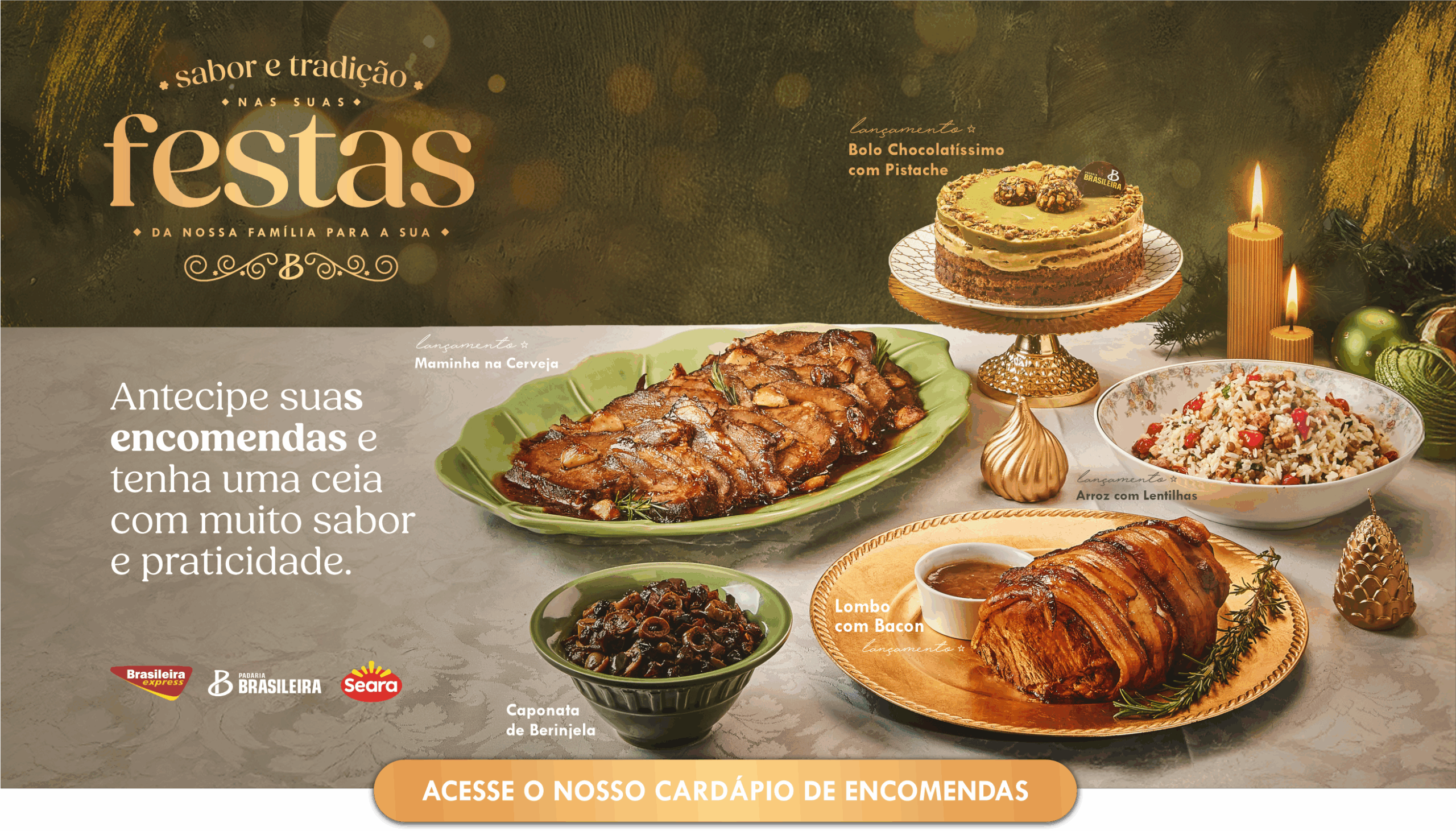 Marca oferece opções de entradas, acompanhamentos, carnes, massas, tortas, sobremesas panetones e presentes natalinos.